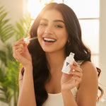 - Apply a few drops of VCARE NATURAL's Skin Radiant Serum to your fingertips.